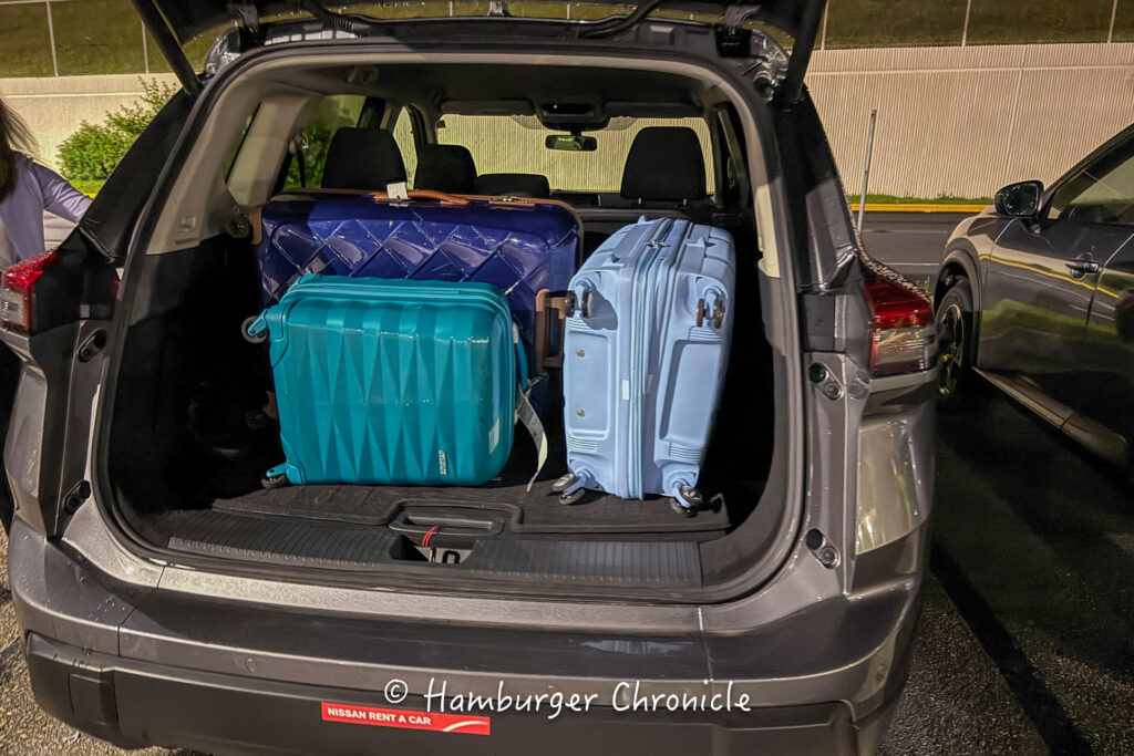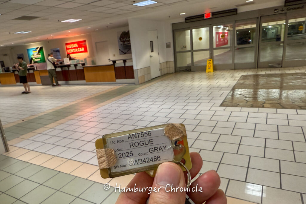 今回レンタルしたローグは少し大きめの SUV (X-TRAIL の海外仕様みたいです) で、レンタル代が$71/日で、フルカバー保険が$12/日、4日間合計で $332 でした。1日$80くらい(150円レートで1.2万円) なので日本で借りるのとそこまで変わらないかなという印象かな。