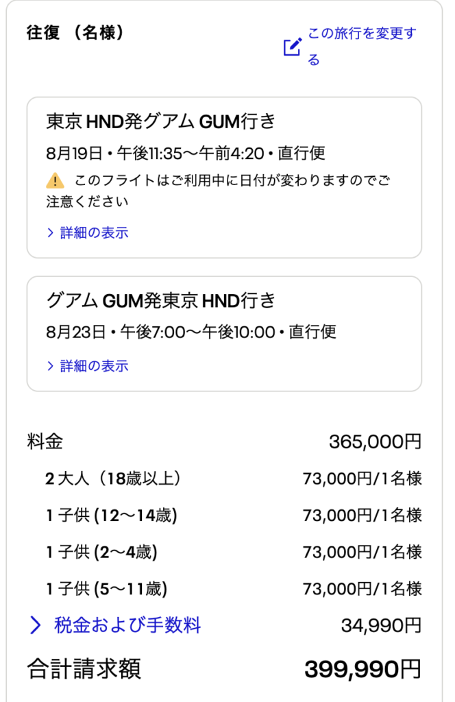 2025年8月のグアム旅行の旅程はこんな感じ