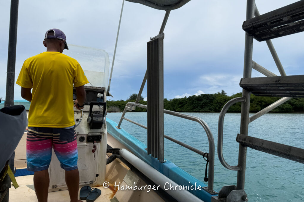 シュノーケルスポットはお店から少し離れているので、ボートで向かいます。朝からずっと曇ってましたが、少し晴れ間が出てきました。天候は本当によく変わるので、悪くても諦めないで!