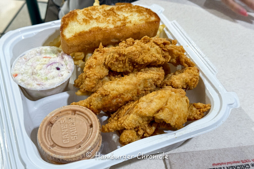 僕は前から気になっていたレイジング ケインズ チキン フィンガー(Raising Cane's Chicken Fingers)でフライドチキンを買いました。特製のソースにつけて食べるんですが、ささみなので全然脂っこくなくてこれはこれで美味しかったです!
