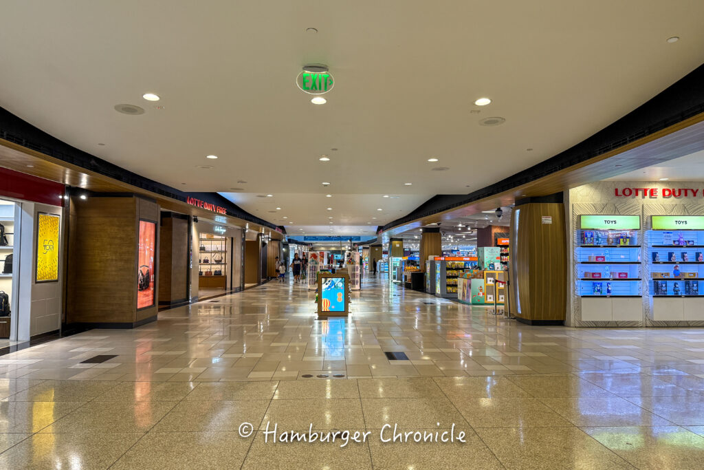出国後エリアはそんなに数は無いけど免税店がいくつかとちょっとしたお土産屋さん、かなり小さめのフードコートがあるので、三女の機嫌が悪くならないようにご機嫌取りをしながらなんとか過ごしました。(ちょこっと遊べるスペースとかあると助かるんですが、そういうのはなかったです)