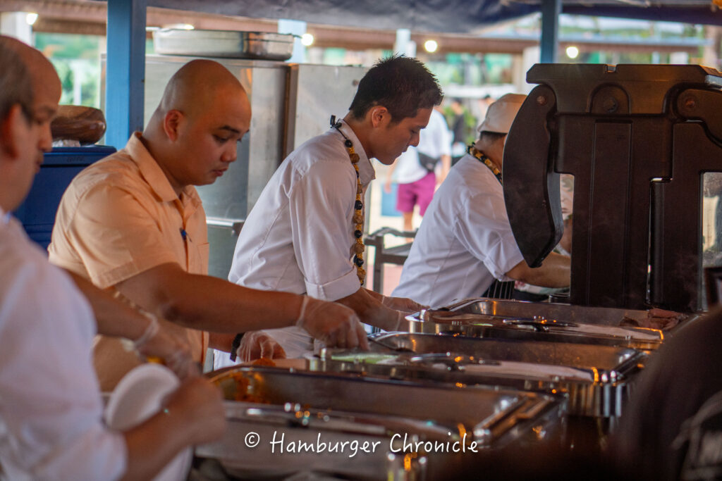 歌とダンスが終わったら、次はチャモロ料理を振る舞ってもらえるので、みんなで並んで料理をいただきます。