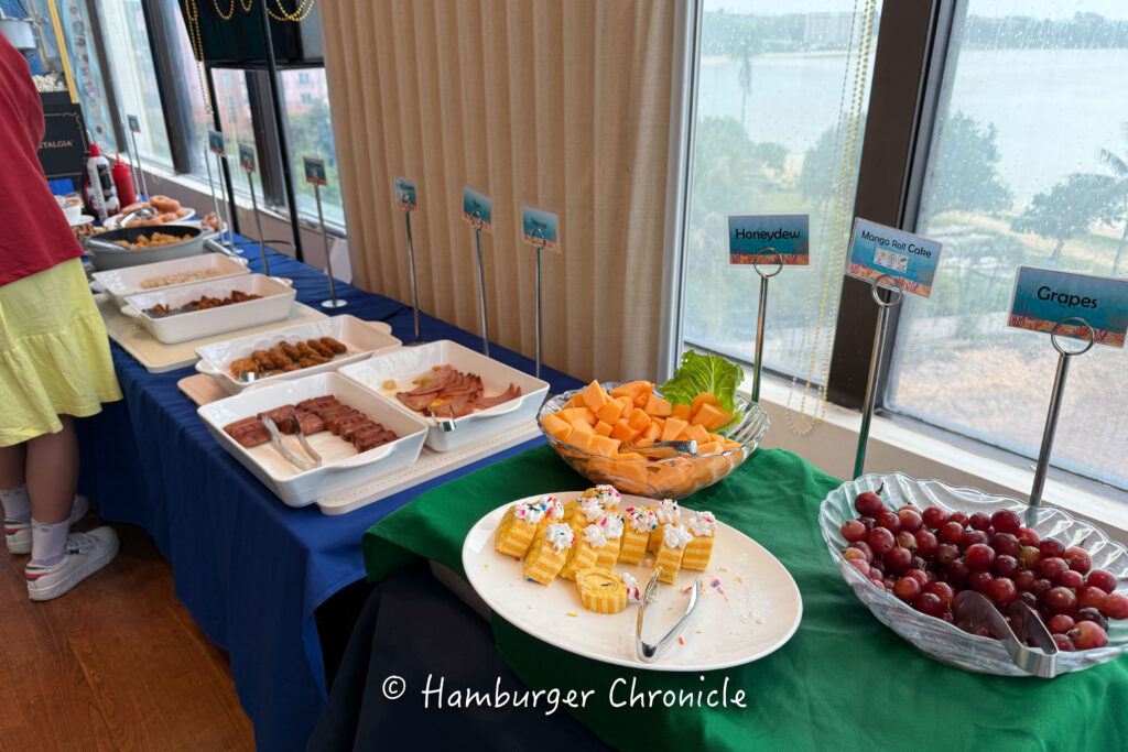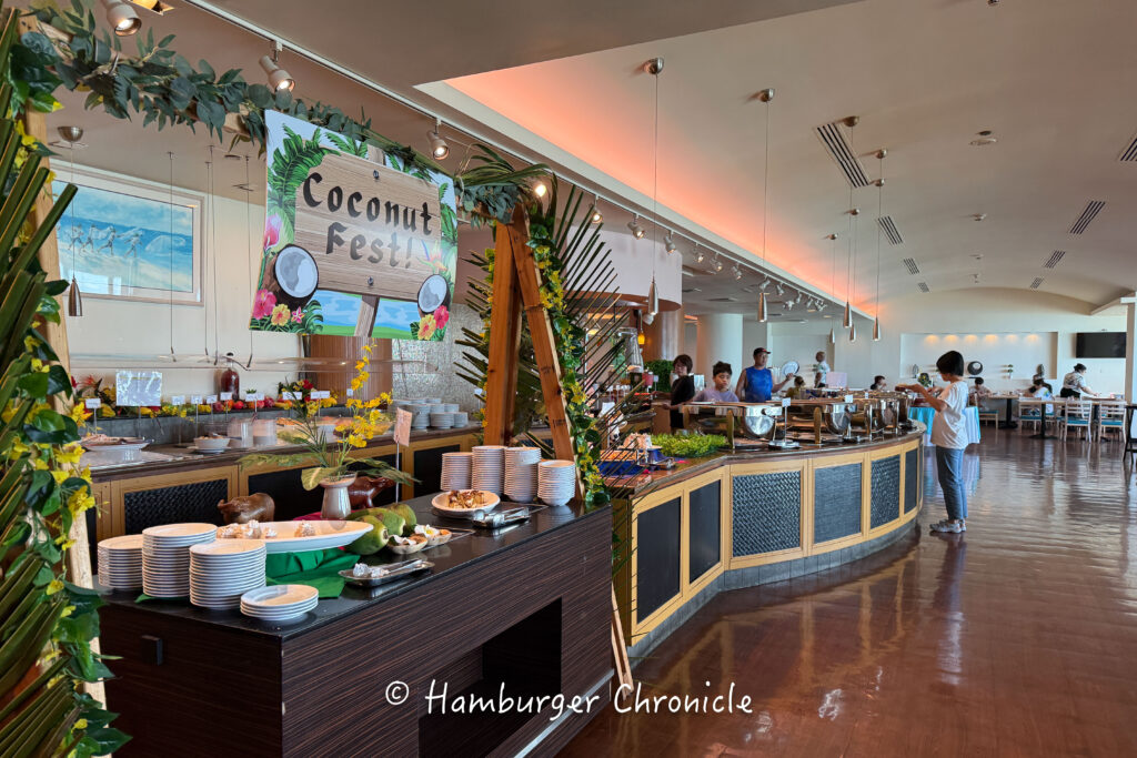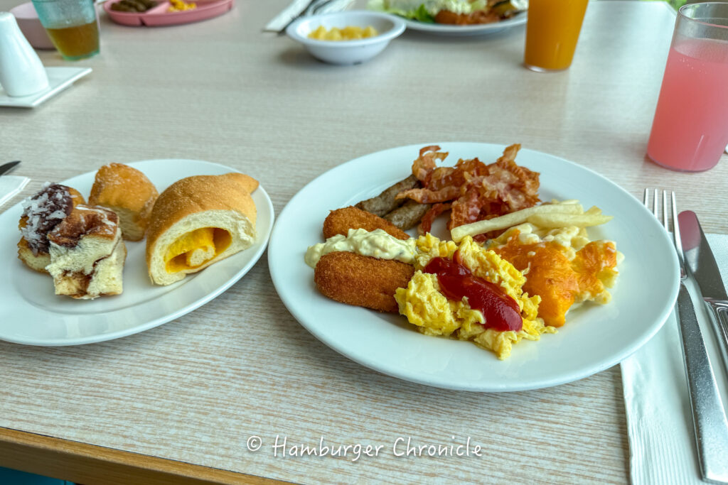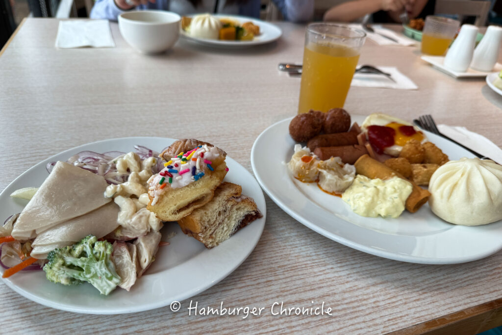 オムレツ作ってくれたりするライブキッチンみたいなのはありませんでしたが、メニューは豊富で、謎に中華系の料理が美味しかったです。