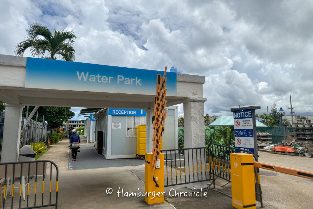 ウォーターパークはホテルのすぐ隣にあるので、部屋で水着に着替えて手ぶらで向かいます。入口は今は工事中で仮設っぽかったです。