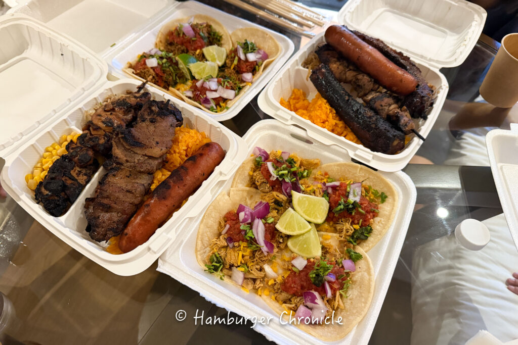 レッドライスに、チキンのちょっと酸味のある味付けのあるやつ、手前のお肉はローストビーフみたいな感じで、どれも美味しかったです。