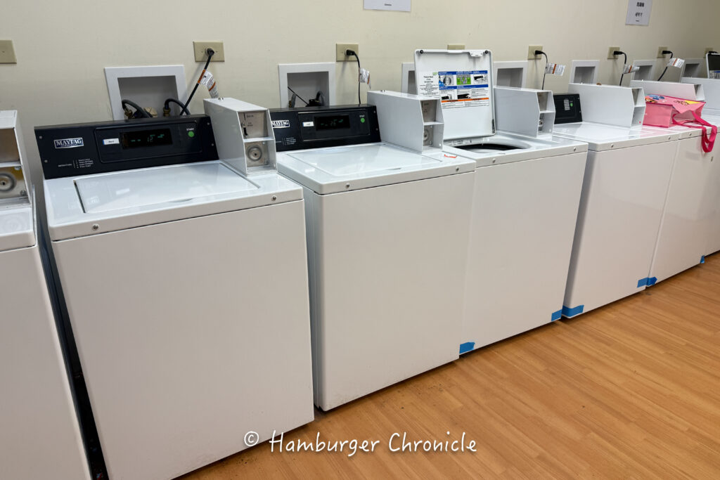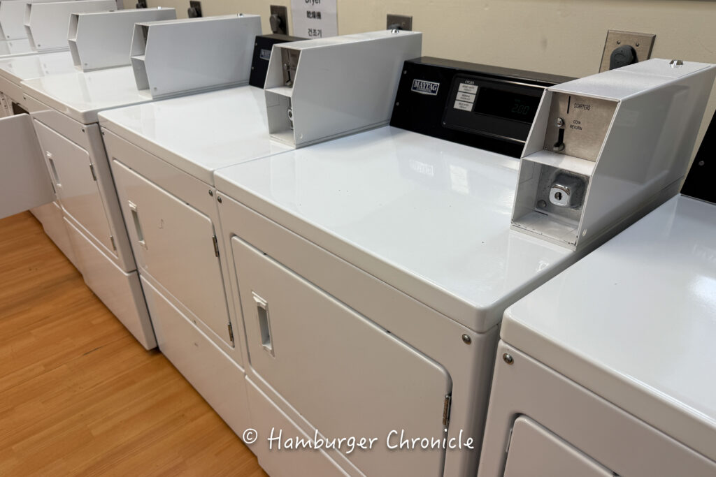 卓球台の奥にはコインランドリーがあって、洗濯機、乾燥機がそれぞれ10台ずつくらいありました。どちらも1回$2なので結構安め。洗剤の用意は無かったので、持参したほうが良さそうです。