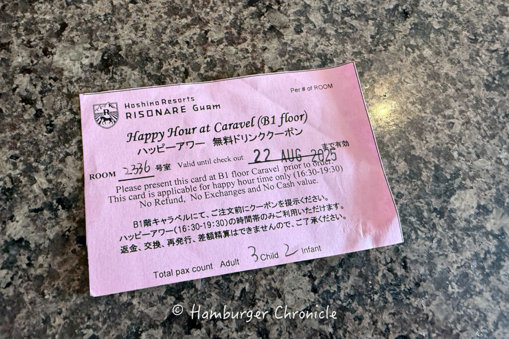 お客さんは見た感じ、8割くらいは日本人で、残りは韓国の方かな~って感じ。欧米の方はいなかった気がするので、よく言えば日本っぽくて安心できるし、ちょっとネガティブに言うとグアム感はあんまりないかもしれません。